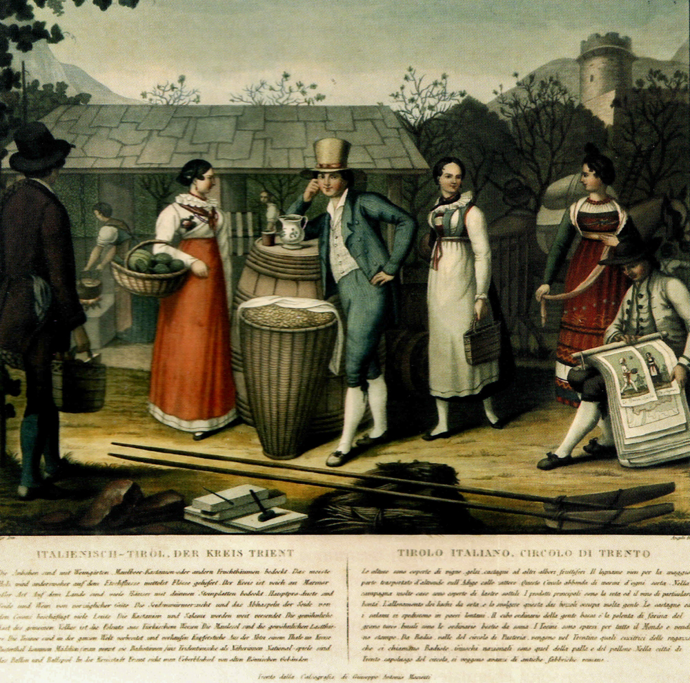 Esse interessante aspecto será abordado em outra ocasião. Este texto se propõe a mostrar que essa contraposição entre italiano (ou seja, falante de uma língua itálica) e tirolês (habitante do Tirol), embora equivocada, não é um fenômeno recente. Já em fins do século XVIII, um grupo de intelectuais da cidade de Rovereto, reunidos na Accademia degli Agiati, publicavam trabalhos defendendo uma presunta italianità das regiões de língua italiana do Tirol que seria incompatível com o pertencimento ao condado tirolês. Um dos membros mais célebres da Accademia degli Agiati, que existe ainda hoje, foi o poeta Clementino Vannetti, filho de dois dos fundadores. Vannetti ficou famoso, particularmente, por responder com ferocidade “a qualquer um que se referia a Rovereto ou roveretanos como tiroleses.” [2] Ele gastava boa parte do seu tempo escrevendo sobre isso a diversos intelectuais. Um deles era o estudioso Girolamo Tiraboschi, livreiro da corte de Modena e considerado um “gigante da história literária italiana”. [2]